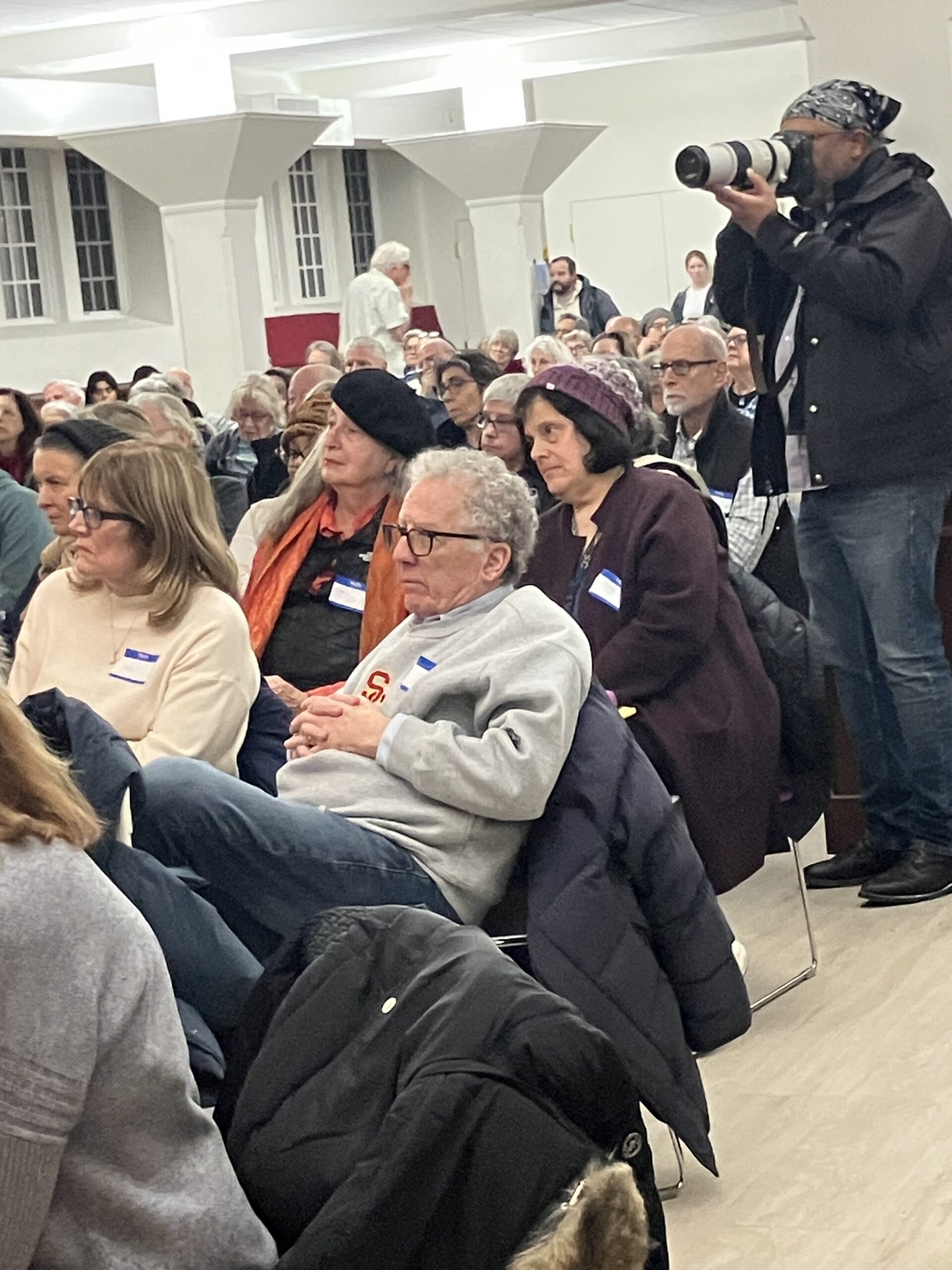 Despite freezing temperatures, a full crowd has turned out tonight at Northminster Church in northwest Evanston to hear Democratic candidates vying for the 9th Congressional seat, which is open for the first time in nearly three decades.